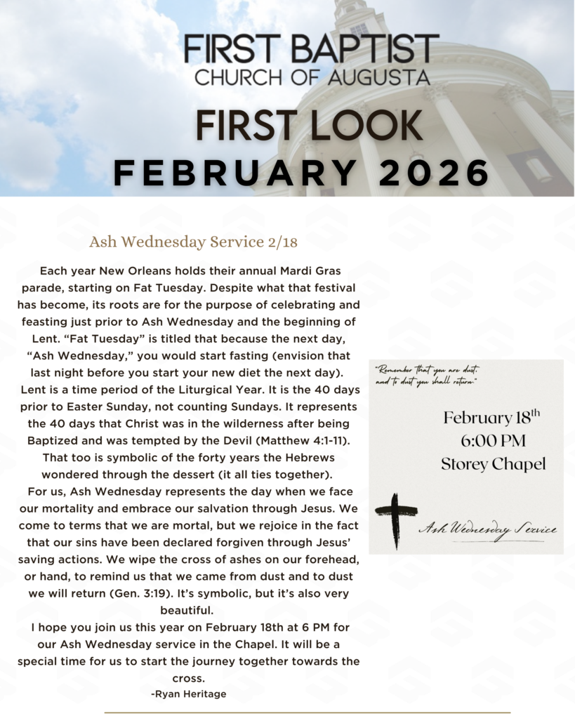 I’ve officially been on staff since June 2023. pastoring the First Baptist Church of Evans as we merged with FBC Augusta and closed operations at the Evans campus. In August 2023 I transitioned into work at FBC Augusta.